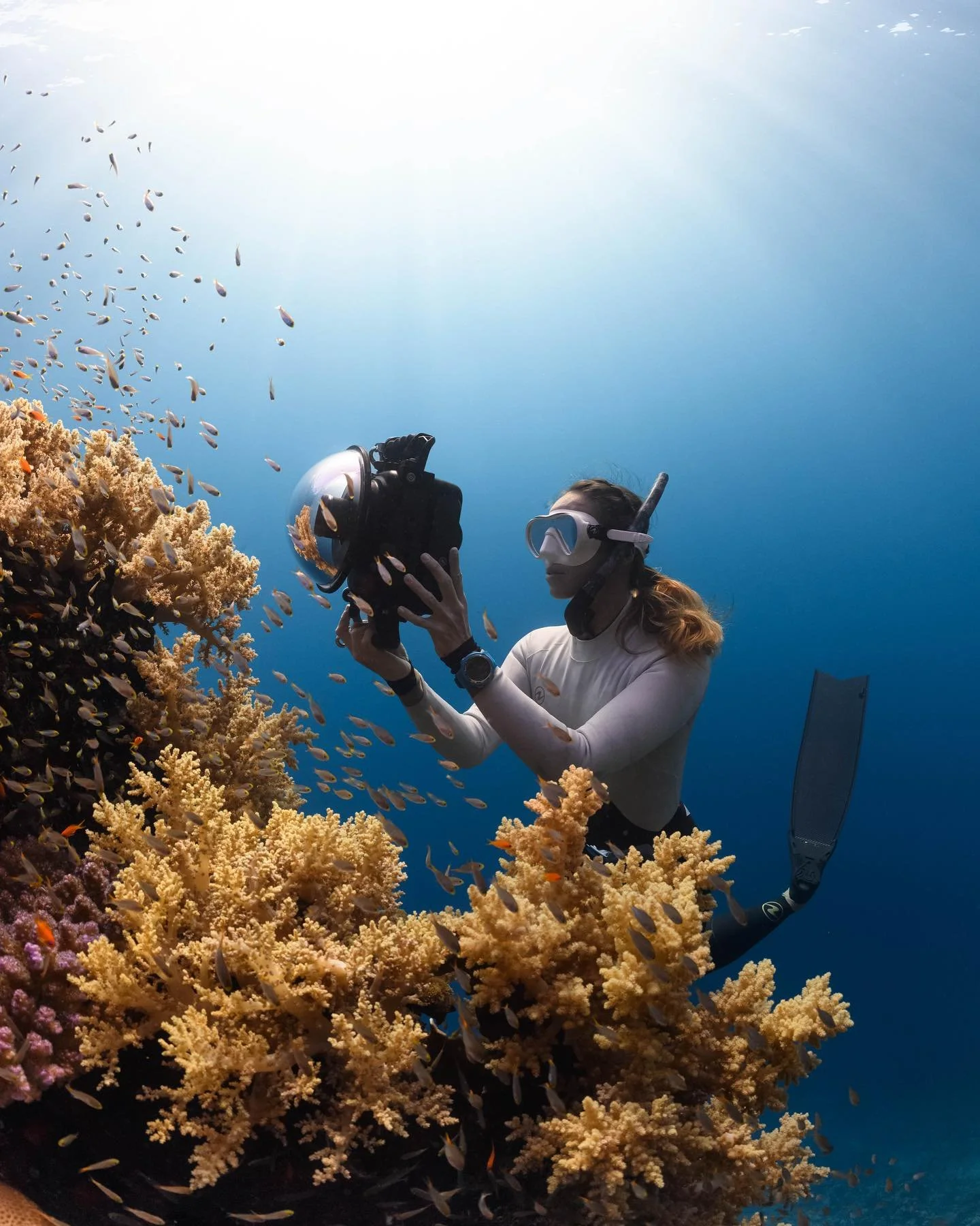 Growing up in Durban, South Africa, Michael developed an intimate connection with the ocean. Eager to share the mesmerising underwater sights he encountered, Michael decided to pursue underwater cinematography and photography. After moving to Dubai in 2008, he soon established himself as a versatile visual artist. Michael’s quest for knowledge led him to immerse himself in numerous diving techniques but favouring freediving while shooting whenever possible. One of Michael’s greatest assets lies in his ability to adapt to different photographic styles. His artistic vision shines through whether he’s capturing underwater landscapes, intricate macro details, or graceful underwater poses with models. His portfolio stands as a testament to his versatility, presenting an array of colours, textures, and emotions extracted from beneath the water’s surface. Michael demonstrates an unwavering commitment to environmental conservation, collaborating with conservation organisations. Through his lens, he helps raise awareness about the delicate nature of marine ecosystems, emphasising their beauty and vulnerability for future generations. Michael’s passion for underwater cinematography and photography remains ceaseless. He continually wants to explore new underwater environments and capture the enigmatic underwater realm. Through his inspiring imagery, he invites viewers on a profound journey to experience the captivating depths, reminding us of the profound beauty concealed beneath the surface of our planet’s waters.